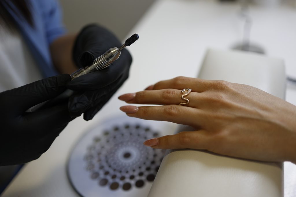 - Kombinacija obrada geliranog nokta s brusilicom i rašpom