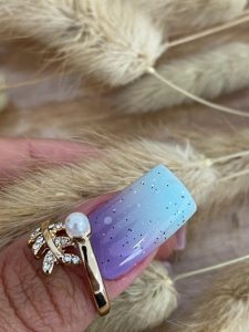 - Tehnika u kombinaciji s mliječnim cover gelom i glitterima
